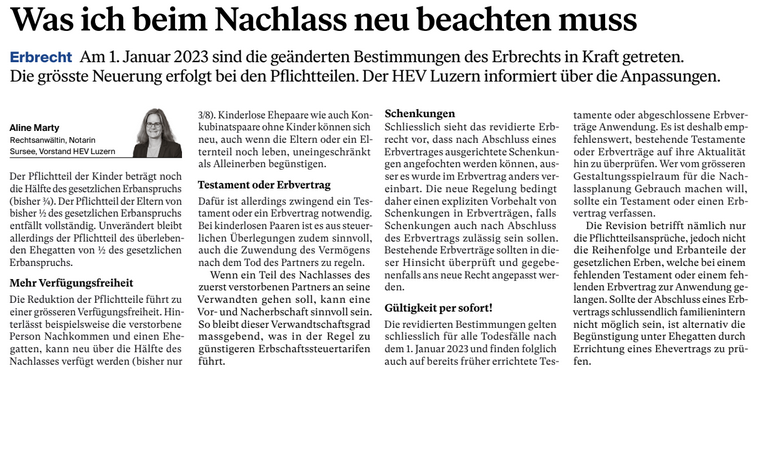 Dieser Beitrag wurde für das Magazin „Hauseigentümer“ des Hauseigentümerverbandes Luzern erstellt. Für weitere Auskünfte steht Ihnen unser Notariatsteam gerne zur Verfügung.